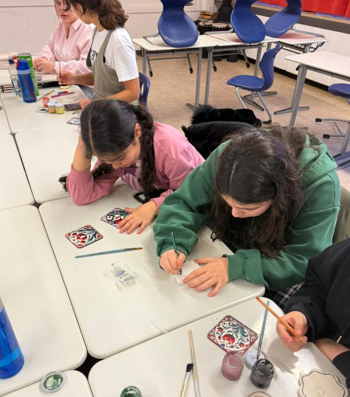 Erlangen Bölgesi Türkçe ve Türk Kültürü Öğretmeni Şafak Yüksel Akyüz, öğrencileriyle birlikte geleneksel çini sanatına odaklanan keyifli ve öğretici bir ders gerçekleştirdi.