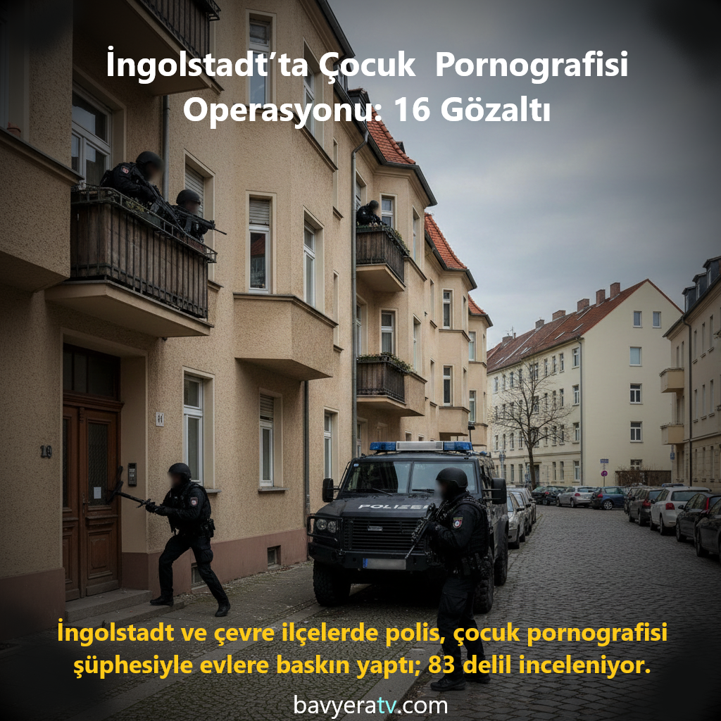 İngolstadt, Eichstätt, Pfaffenhofen a.d. Ilm, Neuburg-Schrobenhausen, 15 Ocak 2026 – İngolstadt Kriminal Polisi öncülüğünde, dün akşam saatlerinde çocuk ve genç pornografisi şüphesiyle birçok evde arama yapıldı. Aramalar, İngolstadt ile Eichstätt, Pfaffenhofen a.d. Ilm ve Neuburg-Schrobenhausen ilçelerinde gerçekleştirildi.