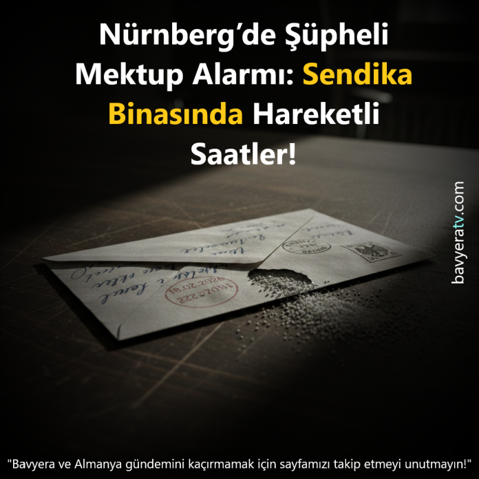 Nürnberg’in kalbi Kornmarkt’taki sendika binasında bu sabah hareketli dakikalar yaşandı. Saat 10:30’da açılan bir mektuptan çıkan şüpheli beyaz madde, güvenlik güçlerini ve itfaiyeyi en üst seviyede alarma geçirdi.