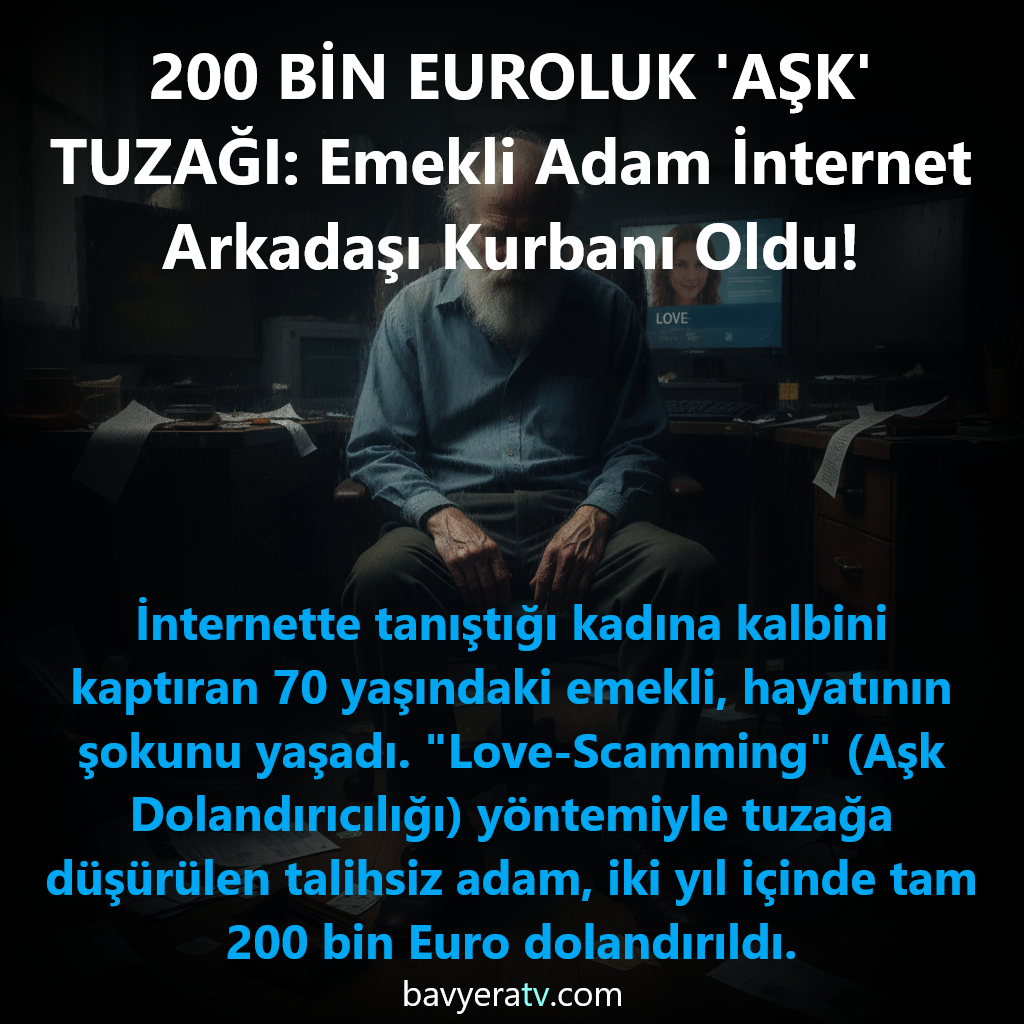 WÜRZBURG – İnternette tanıştığı kadına kalbini kaptıran 70 yaşındaki emekli, hayatının şokunu yaşadı. “Love-Scamming” (Aşk Dolandırıcılığı) yöntemiyle tuzağa düşürülen talihsiz adam, iki yıl içinde tam 200 bin Euro (yaklaşık 7.5 milyon TL) dolandırıldı.