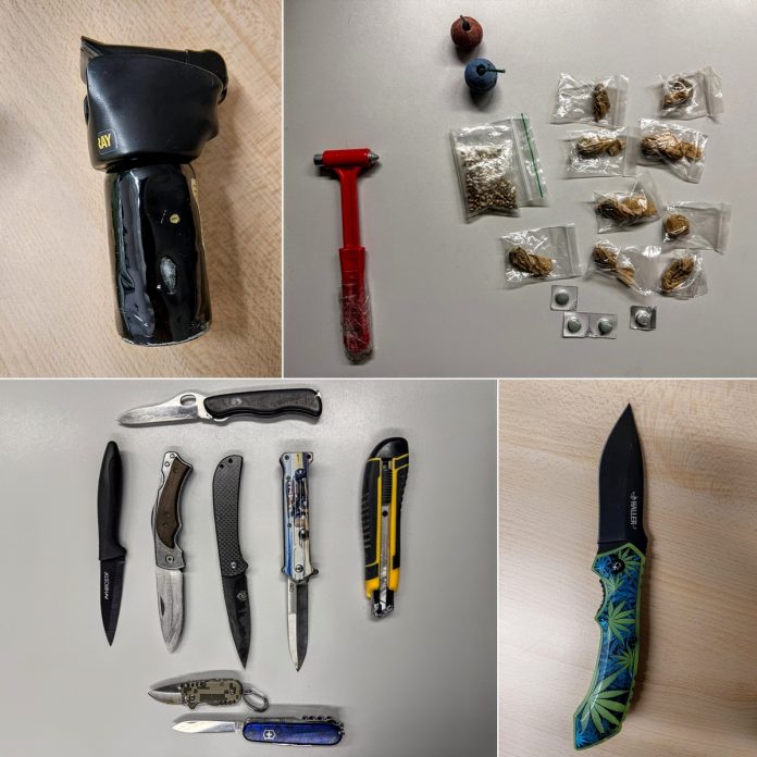Ele geçirilenler arasında mutfak bıçaklarından maket bıçaklarına, biber gazından muştaya kadar birçok kesici ve delici alet yer aldı. En dikkat çekici olay ise sırt çantasında balta taşıyan 20 yaşındaki bir gencin yakalanması oldu. Şahsın daha önce de tren istasyonlarına tehlikeli madde sokma yasağı olduğu belirlendi.