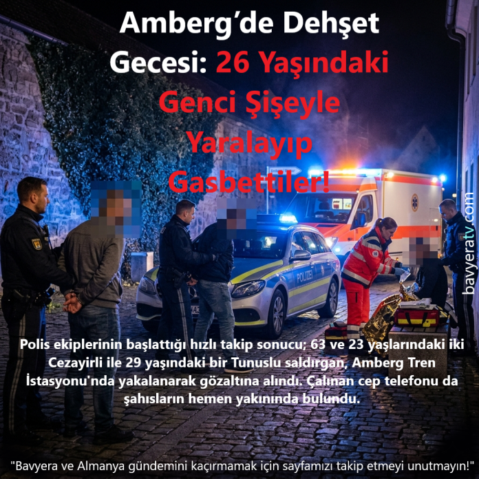 Almanya’nın Bavyera eyaletine bağlı Amberg kentinde, Çarşamba sabahının erken saatlerinde kan donduran bir saldırı gerçekleşti. Tarihi şehir surları (Stadtmauerring) yakınlarında alkol ve sigarasını paylaştığı üç kişi tarafından darbedilen 26 yaşındaki Alman vatandaşı, ağır yaralı olarak hastaneye kaldırıldı.