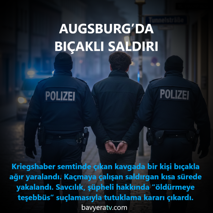 Augsburg Savcılığı ile koordinasyon içinde yürütülen soruşturmaya göre, 15 Ocak 2026 Perşembe günü saat 18.30 sıralarında, Kriegshaber semtindeki Tunnelstraße üzerinde iki Ukrayna uyruklu genç arasında şiddetli bir kavga yaşandı. Kavga sırasında 26 yaşındaki Ukrayna vatandaşı, 25 yaşındaki yine Ukrayna uyruklu kişiyi bıçakla ağır şekilde yaraladı.
