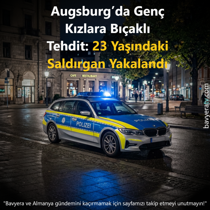 AUGSBURG – Bavyera eyaletinin Augsburg kentinde Pazar akşamı korku dolu anlar yaşandı. Şehir merkezindeki Prinzregentenplatz’da, 23 yaşındaki bir şahıs yaşları 13 ile 15 arasında değişen üç genç kıza saldırarak bıçakla tehdit etti.