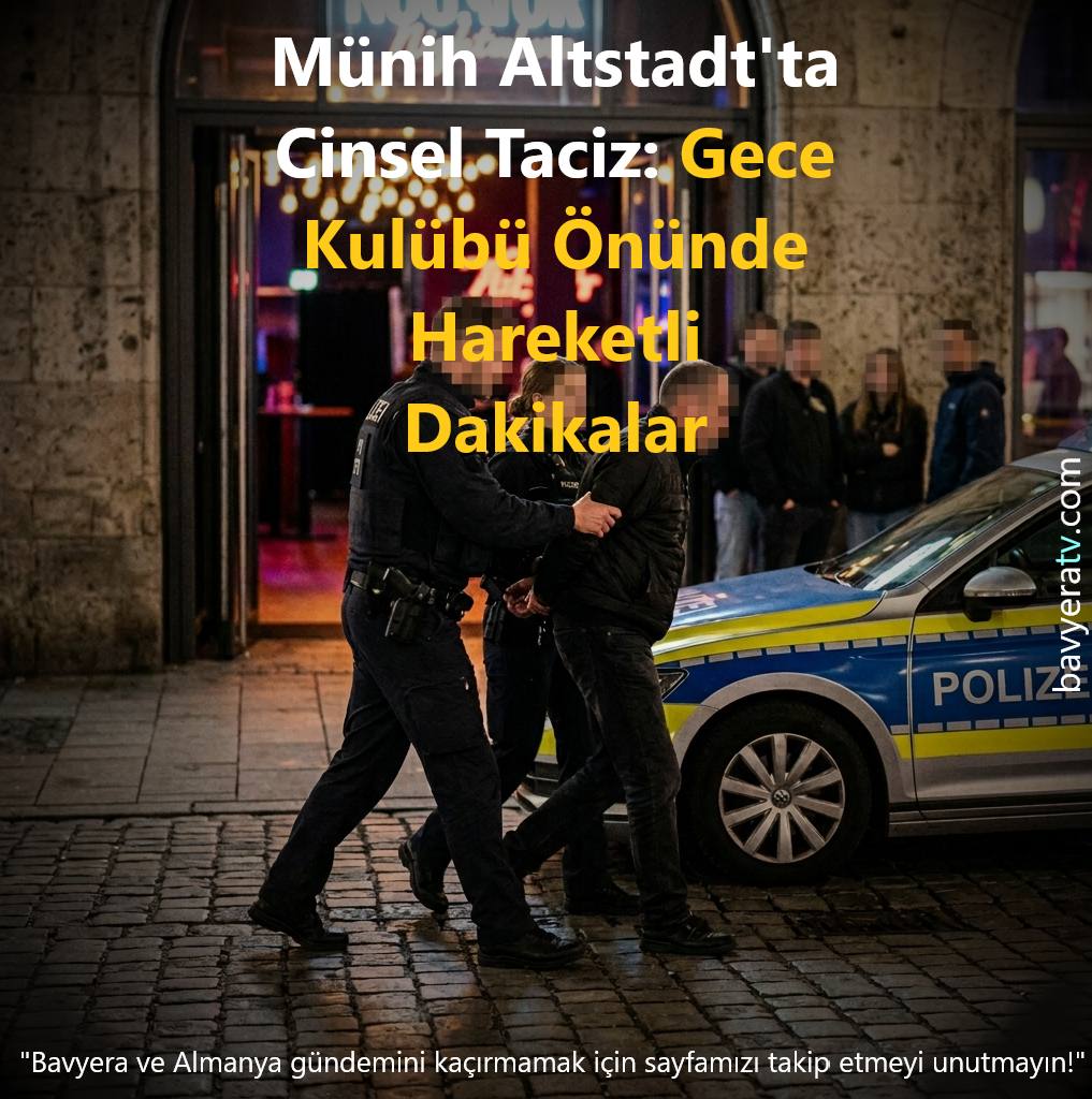 Münih’in tarihi merkezinde (Altstadt) Pazar günü sabaha karşı yaşanan olayda, bir eğlence merkezi önünde genç bir kadını taciz eden şüpheli suçüstü yakalandı.