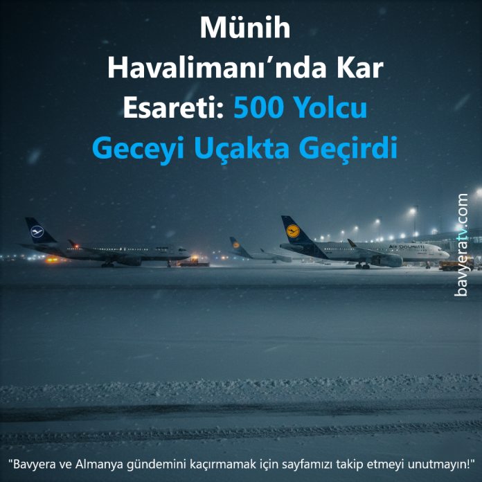 Münih Havalimanı’nda yoğun kar yağışı nedeniyle tam bir ulaşım kaosu yaşandı. Perşembe akşamı uçuşları iptal edilen yaklaşık 500 yolcu, geceyi uçakların içinde geçirmek zorunda kaldı.
