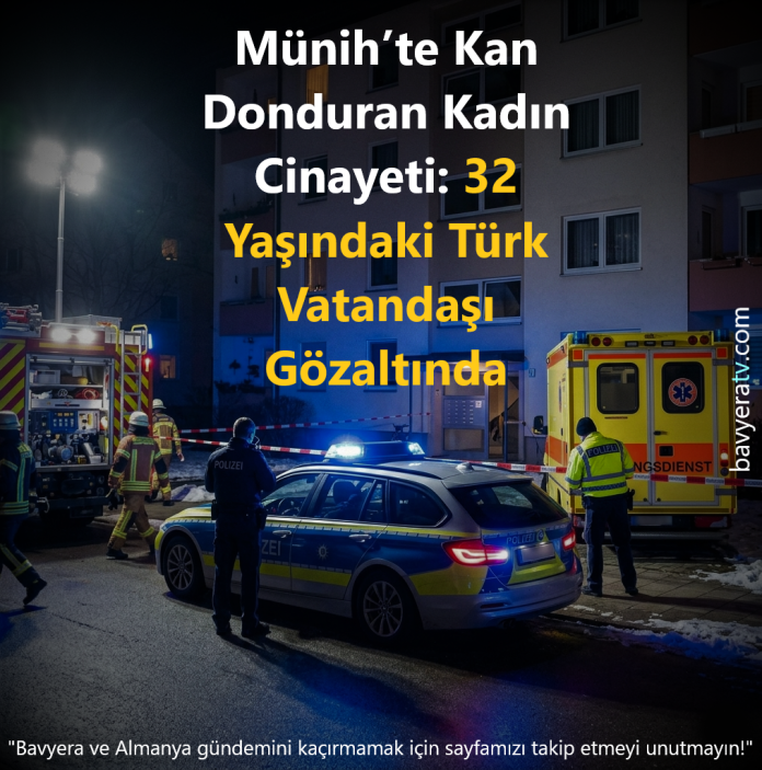 MÜNİH – Bavyera eyaletinin başkenti Münih’in Moosach ilçesinde Perşembe akşamı meydana gelen trajik olayda, 31 yaşındaki bir Alman kadın hayatını kaybetti. Olayla ilgili olarak 32 yaşındaki bir Türk vatandaşı, cinayet zanlısı olarak polis tarafından kıskıvrak yakalandı.