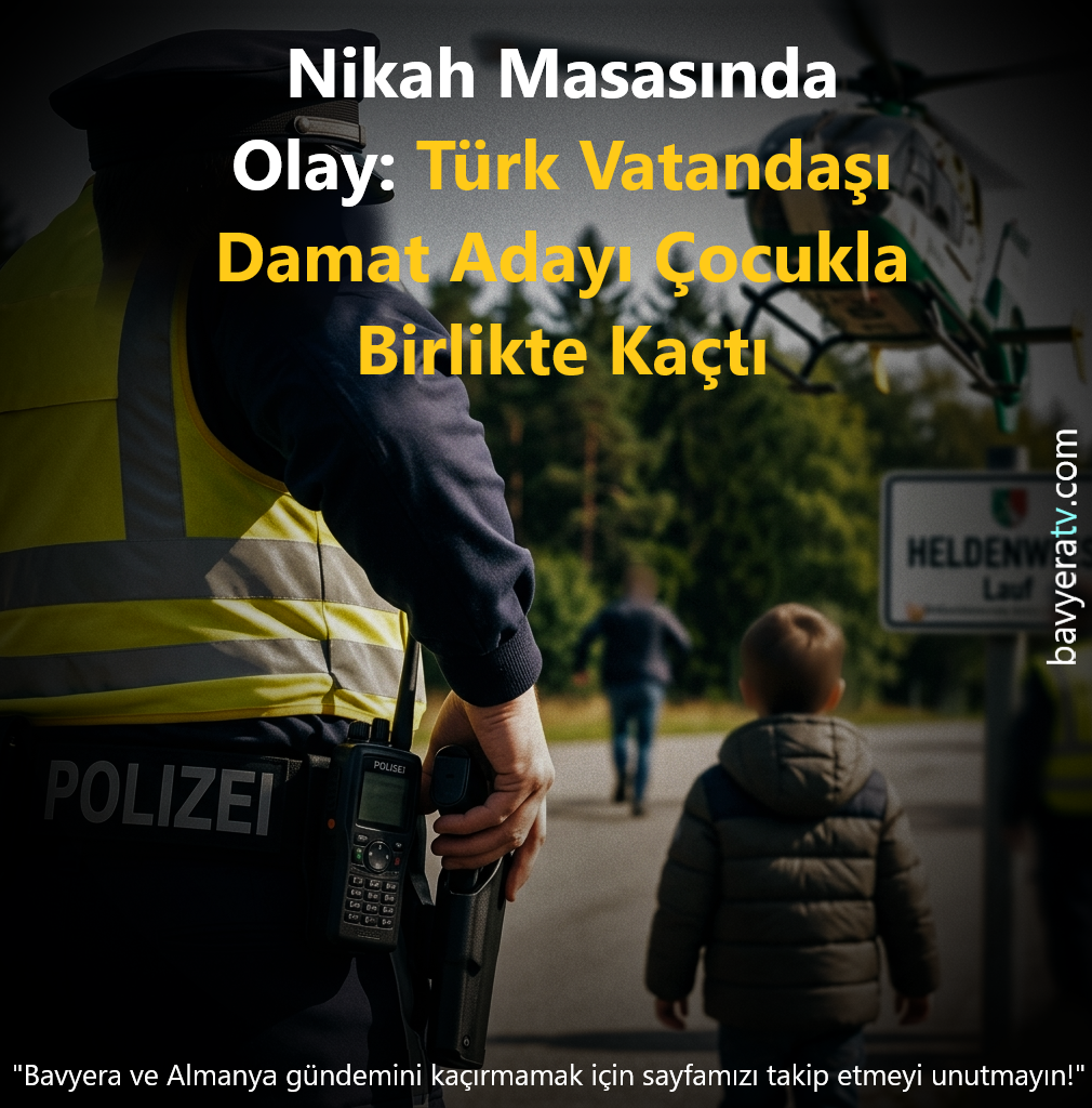 Bavyera eyaletine bağlı Lauf an der Pegnitz kasabasında Perşembe günü (19.03.2026) hareketli saatler yaşandı. Nikah işlemleri için belediyeye gelen 23 yaşındaki Türk vatandaşı bir genç, işlemlerin durdurulması üzerine nişanlısının küçük çocuğunu yanına alarak kayıplara karıştı.