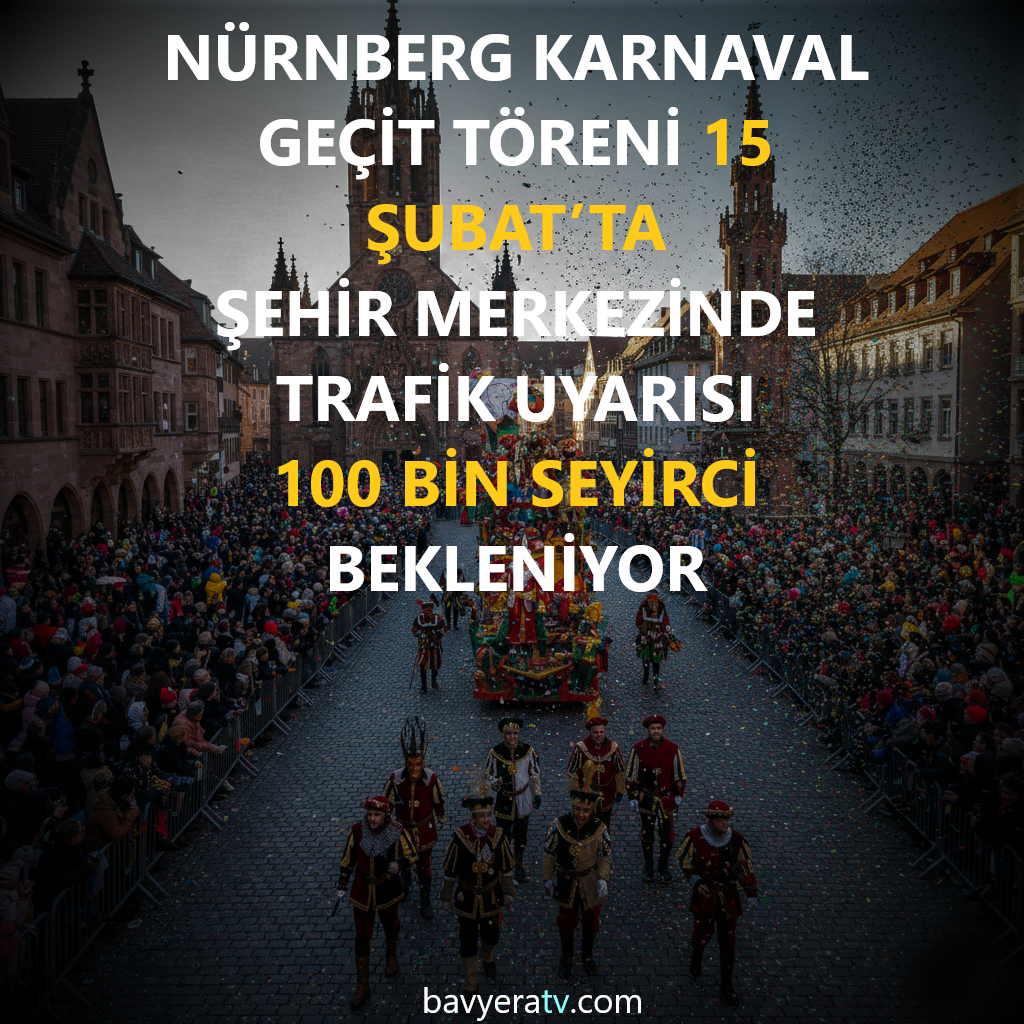Nürnberg – Şehir merkezi, 15 Şubat Pazar günü düzenlenecek geleneksel karnaval geçit töreniyle bir kez daha renkli görüntülere sahne olacak. Tarihi eski şehir güzergâhında gerçekleştirilecek etkinlikte yaklaşık 100 bin seyircinin katılımı bekleniyor. Yoğunluk nedeniyle sabah saatlerinden itibaren kapsamlı trafik önlemleri uygulanacak.