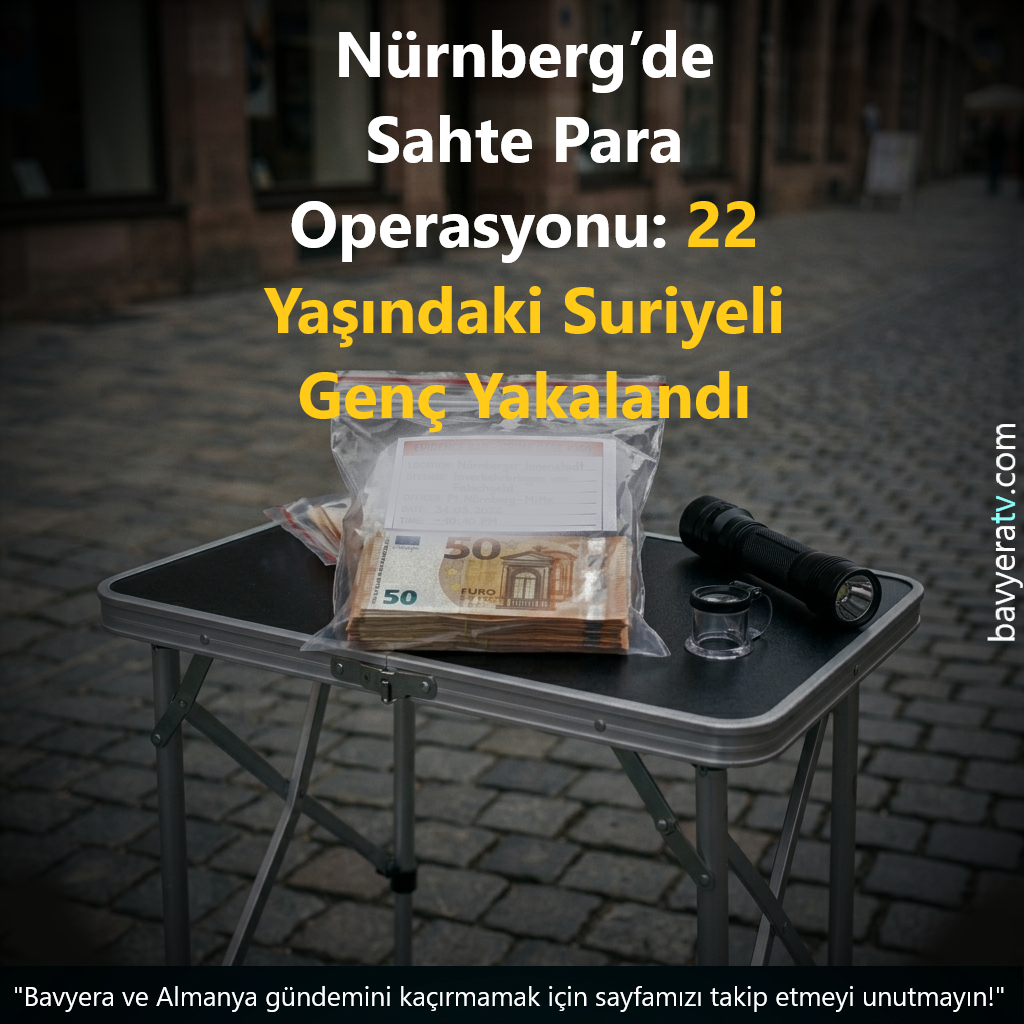 NÜRNBERG – Orta Frankonya Emniyet Müdürlüğü’nden yapılan açıklamaya göre, Nürnberg şehir merkezinde sahte banknotla ödeme yapmaya çalışan 22 yaşındaki Suriyeli bir genç, dikkati bir tanık sayesinde yakayı ele verdi.