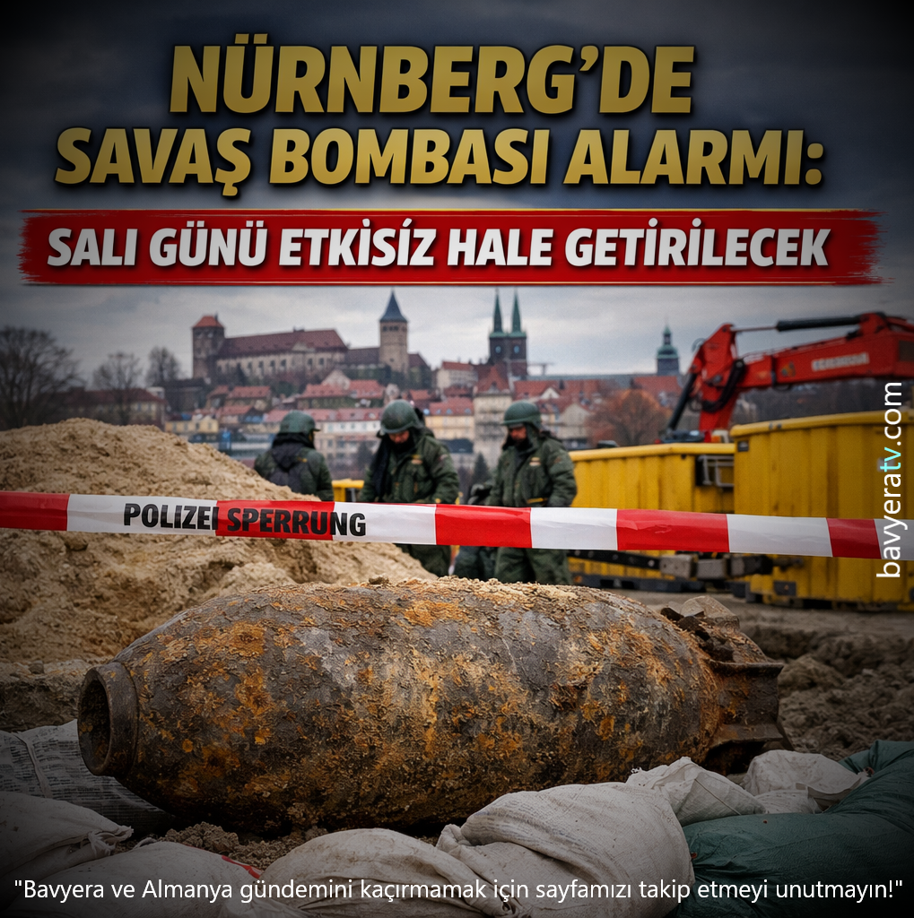 Nürnberg’de İkinci Dünya Savaşı’ndan kalma bir Amerikan hava bombasının bulunması kentte kısa süreli endişeye neden oldu. Yetkililer, bombanın 10 Mart 2026 Salı günü kontrollü şekilde etkisiz hale getirileceğini açıkladı.