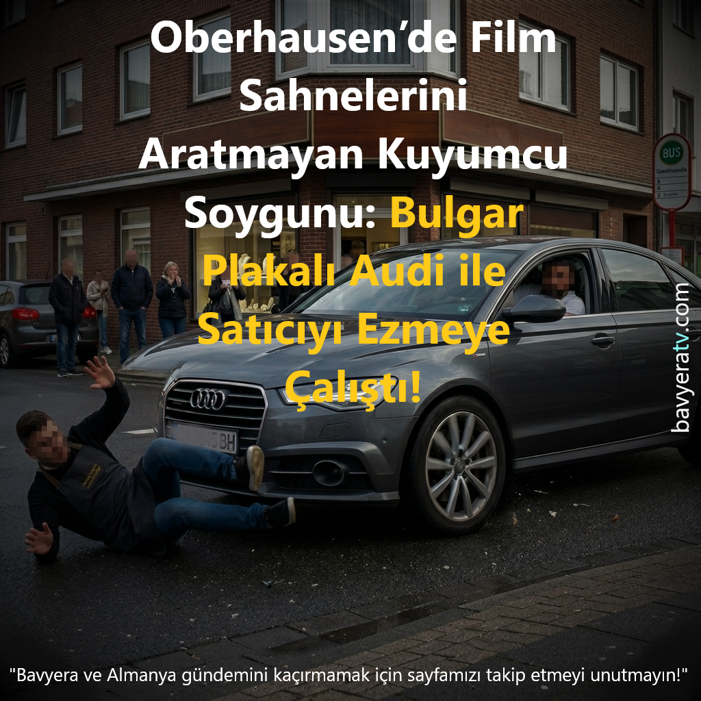 Almanya’nın Oberhausen kentinde, Cumartesi günü öğleden sonra Concordiastraße üzerinde bulunan bir kuyumcuda akılalmaz bir soygun ve kaçış olayı yaşandı. Güney Doğu Avrupa kökenli olduğu belirlenen bir şahıs, mücevherleri çaldıktan sonra kendisini durdurmaya çalışan dükkan çalışanını Bulgar plakalı aracıyla çarparak yere savurdu.