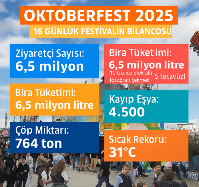 Oktoberfest 2025, bu sayılarla hem eğlence hem de güvenlik açısından yoğun bir festival olarak tarih sahnesindeki yerini aldı.