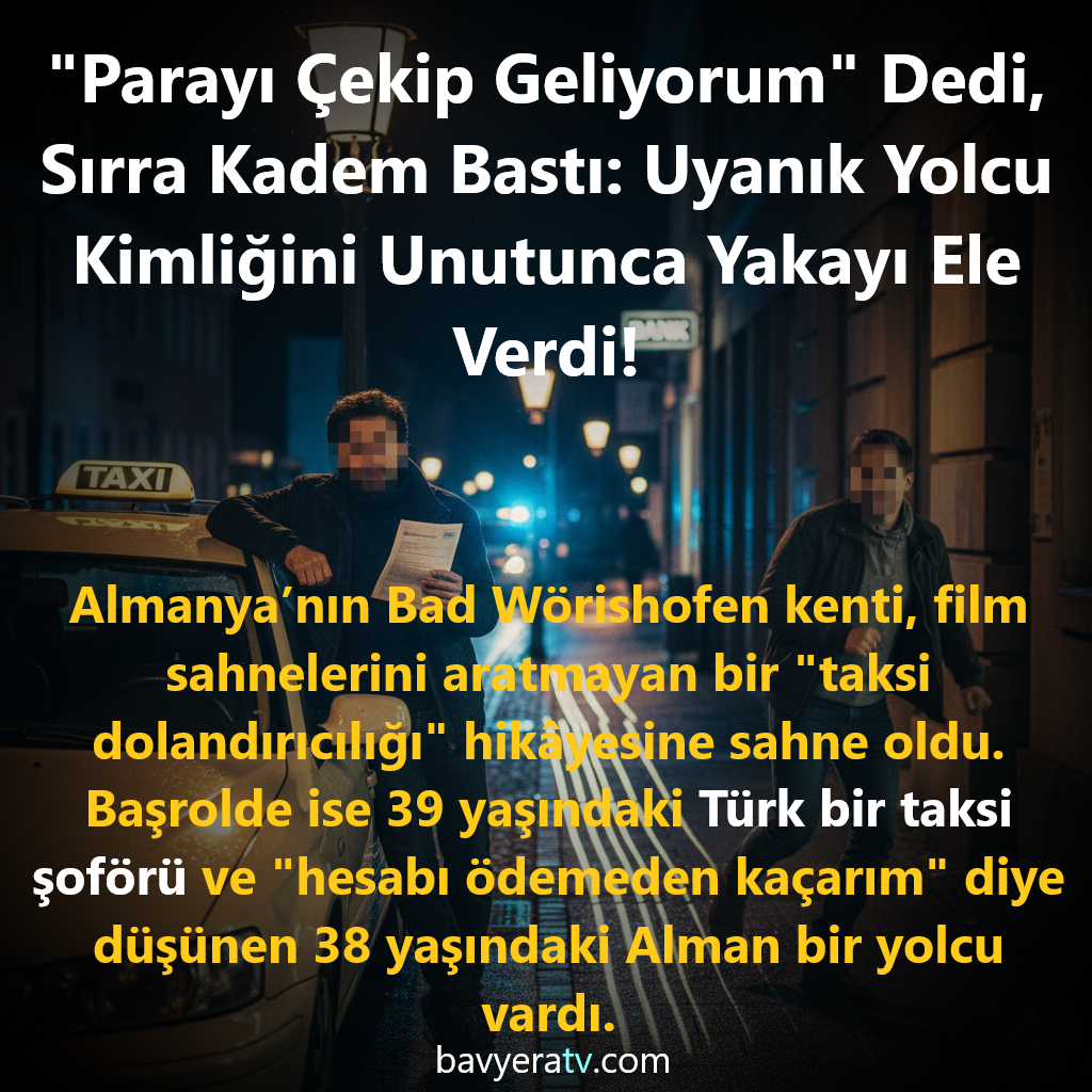 Almanya’nın Bavyera eyaletine bağlı Bad Wörishofen kentinde bir taksi dolandırıcılığı olayı yaşandı. Olayın merkezinde 39 yaşındaki Türk vatandaşı bir taksi şoförü ile 38 yaşındaki Alman bir yolcu yer aldı.